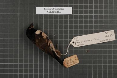 | Keywords: Naturalis Biodiversity Center - RMNH.AVES.160852 1 - Lonchura fringilloides Lafresnaye, 1835 - Estrildidae - bird skin specimen.jpeg artwork Dimensions artwork Document type Estrildidae Lonchura Individual count 1 Infraspecific epithet Infraspecific rank Institution Naturalis Kind of unit artwork Kind of unit specimen skin Life stage adult Afrika Liberia Monrovia Medium artwork Nomenclatural code Occurrence ID page Other fields Other versions artwork Permission license Naturalis donation CC-0 Publication location Scientific name Lonchura fringilloides Lafresnaye 1835 Scientific name authorship Lafresnaye 1835 male Source url http //bioportal naturalis nl Specific epithet fringilloides State or province Subject keywords artwork Subject keywords publication Title artwork Title publication Type status Uploaded with GWToolset Naturalis_Biodiversity_Center_-_RMNH AVES 160852_1_-_Lonchura_fringilloides_Lafresnaye _1835_-_Estrildidae_-_bird_skin_specimen http //medialib naturalis nl/file/id/RMNH AVES 160852_1/format/large Media donated by Naturalis Biodiversity Center Songbird specimens at Naturalis Biodiversity Center Lonchura fringilloides Lonchura |