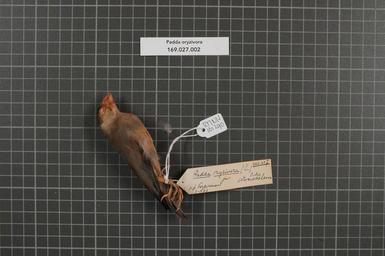 | Keywords: Naturalis Biodiversity Center - RMNH.AVES.161290 1 - Padda oryzivora (Linnaeus, 1758) - Estrildidae - bird skin specimen.jpeg artwork Dimensions artwork Document type Estrildidae Padda Individual count 1 Infraspecific epithet Infraspecific rank Institution Naturalis Kind of unit artwork Kind of unit specimen skin Life stage juvenile Wonosalam Medium artwork Nomenclatural code Occurrence ID page Other fields Other versions artwork Permission license Naturalis donation CC-0 Publication location Scientific name Padda oryzivora Linnaeus 1758 Scientific name authorship Linnaeus 1758 Source url http //bioportal naturalis nl Specific epithet oryzivora State or province Subject keywords artwork Subject keywords publication Title artwork Title publication Type status Uploaded with GWToolset Naturalis_Biodiversity_Center_-_RMNH AVES 161290_1_-_Padda_oryzivora_ Linnaeus _1758 _-_Estrildidae_-_bird_skin_specimen http //medialib naturalis nl/file/id/RMNH AVES 161290_1/format/large Media donated by Naturalis Biodiversity Center Songbird specimens at Naturalis Biodiversity Center Lonchura oryzivora Lonchura |