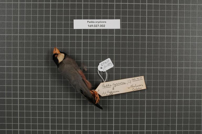| Keywords: Naturalis Biodiversity Center - RMNH.AVES.161289 1 - Padda oryzivora (Linnaeus, 1758) - Estrildidae - bird skin specimen.jpeg artwork Dimensions artwork Document type Estrildidae Padda Individual count 1 Infraspecific epithet Infraspecific rank Institution Naturalis Kind of unit artwork Kind of unit specimen skin Life stage Indonesia Celebes Makasser Medium artwork Nomenclatural code Occurrence ID page Other fields Other versions artwork Permission license Naturalis donation CC-0 Publication location Scientific name Padda oryzivora Linnaeus 1758 Scientific name authorship Linnaeus 1758 male Source url http //bioportal naturalis nl Specific epithet oryzivora State or province Subject keywords artwork Subject keywords publication Title artwork Title publication Type status Uploaded with GWToolset Naturalis_Biodiversity_Center_-_RMNH AVES 161289_1_-_Padda_oryzivora_ Linnaeus _1758 _-_Estrildidae_-_bird_skin_specimen http //medialib naturalis nl/file/id/RMNH AVES 161289_1/format/large Media donated by Naturalis Biodiversity Center Songbird specimens at Naturalis Biodiversity Center Lonchura oryzivora Lonchura |