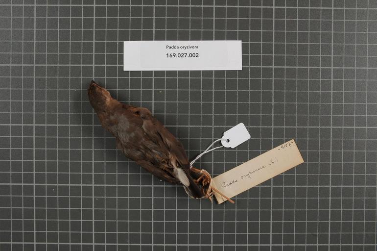 | Keywords: Naturalis Biodiversity Center - RMNH.AVES.161302 2 - Padda oryzivora (Linnaeus, 1758) - Estrildidae - bird skin specimen.jpeg artwork Dimensions artwork Document type Estrildidae Padda Individual count 1 Infraspecific epithet Infraspecific rank Institution Naturalis Kind of unit artwork Kind of unit specimen skin Life stage juvenile Tjikalong Medium artwork Nomenclatural code ADDITIONAL info P Occurrence ID page Other fields Other versions artwork Permission license Naturalis donation CC-0 Publication location Scientific name Padda oryzivora Linnaeus 1758 Scientific name authorship Linnaeus 1758 female Source url http //bioportal naturalis nl Specific epithet oryzivora State or province Subject keywords artwork Subject keywords publication Title artwork Title publication Type status Uploaded with GWToolset Naturalis_Biodiversity_Center_-_RMNH AVES 161302_2_-_Padda_oryzivora_ Linnaeus _1758 _-_Estrildidae_-_bird_skin_specimen http //medialib naturalis nl/file/id/RMNH AVES 161302_2/format/large Media donated by Naturalis Biodiversity Center Songbird specimens at Naturalis Biodiversity Center Lonchura oryzivora Lonchura |