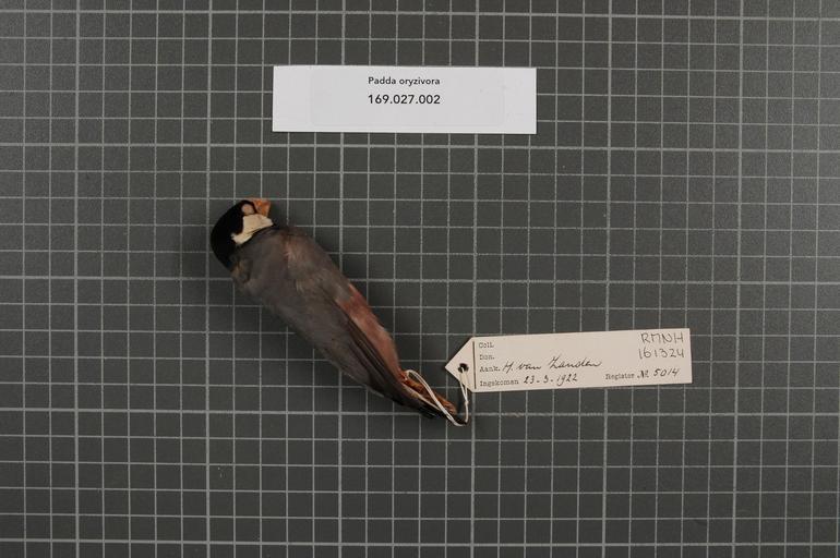 | Keywords: Naturalis Biodiversity Center - RMNH.AVES.161324 1 - Padda oryzivora (Linnaeus, 1758) - Estrildidae - bird skin specimen.jpeg artwork Dimensions artwork Document type Estrildidae Padda Individual count 1 Infraspecific epithet Infraspecific rank Institution Naturalis Kind of unit artwork Kind of unit specimen skin Life stage Medium artwork Nomenclatural code Occurrence ID page Other fields Other versions artwork Permission license Naturalis donation CC-0 Publication location Scientific name Padda oryzivora Linnaeus 1758 Scientific name authorship Linnaeus 1758 Source url http //bioportal naturalis nl Specific epithet oryzivora State or province Subject keywords artwork Subject keywords publication Title artwork Title publication Type status Uploaded with GWToolset Naturalis_Biodiversity_Center_-_RMNH AVES 161324_1_-_Padda_oryzivora_ Linnaeus _1758 _-_Estrildidae_-_bird_skin_specimen http //medialib naturalis nl/file/id/RMNH AVES 161324_1/format/large Media donated by Naturalis Biodiversity Center Songbird specimens at Naturalis Biodiversity Center Lonchura oryzivora Lonchura |