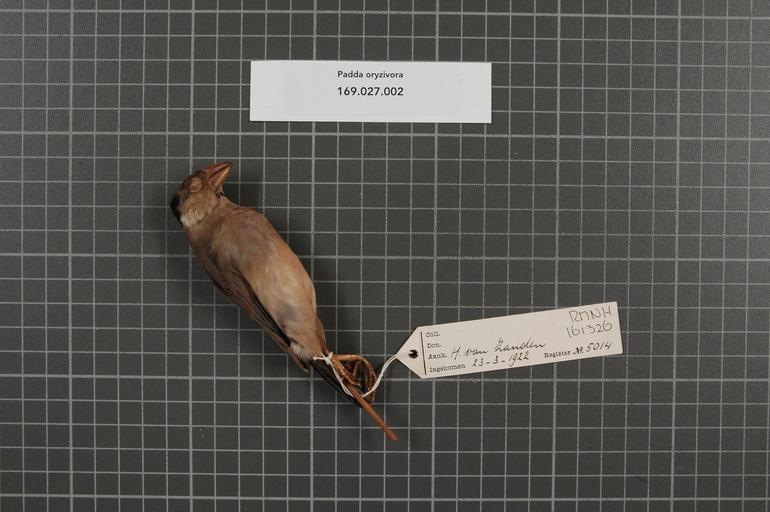 | Keywords: Naturalis Biodiversity Center - RMNH.AVES.161326 1 - Padda oryzivora (Linnaeus, 1758) - Estrildidae - bird skin specimen.jpeg artwork Dimensions artwork Document type Estrildidae Padda Individual count 1 Infraspecific epithet Infraspecific rank Institution Naturalis Kind of unit artwork Kind of unit specimen skin Life stage Medium artwork Nomenclatural code Occurrence ID page Other fields Other versions artwork Permission license Naturalis donation CC-0 Publication location Scientific name Padda oryzivora Linnaeus 1758 Scientific name authorship Linnaeus 1758 Source url http //bioportal naturalis nl Specific epithet oryzivora State or province Subject keywords artwork Subject keywords publication Title artwork Title publication Type status Uploaded with GWToolset Naturalis_Biodiversity_Center_-_RMNH AVES 161326_1_-_Padda_oryzivora_ Linnaeus _1758 _-_Estrildidae_-_bird_skin_specimen http //medialib naturalis nl/file/id/RMNH AVES 161326_1/format/large Media donated by Naturalis Biodiversity Center Songbird specimens at Naturalis Biodiversity Center Lonchura oryzivora Lonchura |