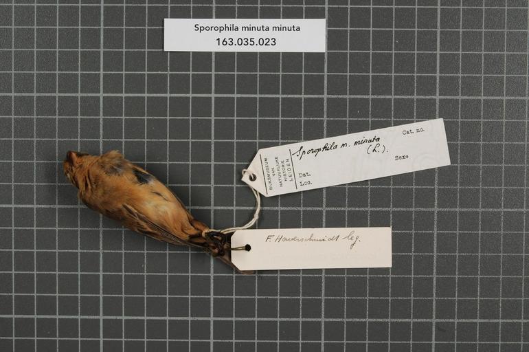 Keywords: Naturalis Biodiversity Center - RMNH.AVES.21817 2 - Sporophila minuta minuta (Linnaeus, 1758) - Emberizidae - bird skin specimen.jpeg artwork Dimensions artwork Document type Emberizidae Sporophila Individual count 1 Infraspecific epithet minuta Infraspecific rank Institution Naturalis Kind of unit artwork Kind of unit specimen skin Life stage juvenile Surinam Coronie Medium artwork Nomenclatural code Occurrence ID page Other fields Other versions artwork Permission license Naturalis donation CC-0 Publication location Scientific name Sporophila minuta minuta Linnaeus 1758 Scientific name authorship Linnaeus 1758 Source url http //bioportal naturalis nl Specific epithet minuta State or province Subject keywords artwork Subject keywords publication Title artwork Title publication Type status Uploaded with GWToolset Naturalis_Biodiversity_Center_-_RMNH AVES 21817_2_-_Sporophila_minuta_minuta_ Linnaeus _1758 _-_Emberizidae_-_bird_skin_specimen http //medialib naturalis nl/file/id/RMNH AVES 21817_2/format/large Media donated by Naturalis Biodiversity Center Songbird specimens at Naturalis Biodiversity Center Sporophila minuta Sporophila |