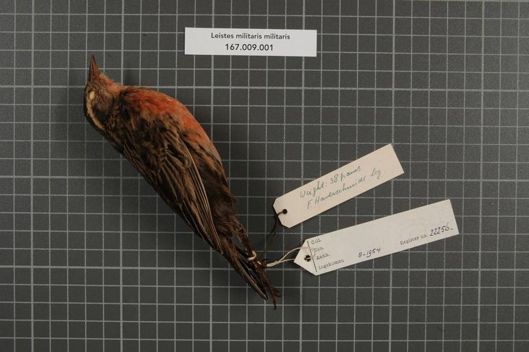 Keywords: Naturalis Biodiversity Center - RMNH.AVES.22256 1 - Leistes militaris militaris (Linnaeus, 1758) - Icteridae - bird skin specimen.jpeg artwork Dimensions artwork Document type Icteridae Leistes Individual count 1 Infraspecific epithet militaris Infraspecific rank Institution Naturalis Kind of unit artwork Kind of unit specimen skin Life stage immature Surinam Zanderij Medium artwork Nomenclatural code Occurrence ID page Other fields Other versions artwork Permission license Naturalis donation CC-0 Publication location Scientific name Leistes militaris militaris Linnaeus 1758 Scientific name authorship Linnaeus 1758 male Source url http //bioportal naturalis nl Specific epithet militaris State or province Subject keywords artwork Subject keywords publication Title artwork Title publication Type status Uploaded with GWToolset Naturalis_Biodiversity_Center_-_RMNH AVES 22256_1_-_Leistes_militaris_militaris_ Linnaeus _1758 _-_Icteridae_-_bird_skin_specimen http //medialib naturalis nl/file/id/RMNH AVES 22256_1/format/large Media donated by Naturalis Biodiversity Center Songbird specimens at Naturalis Biodiversity Center Sturnella militaris |