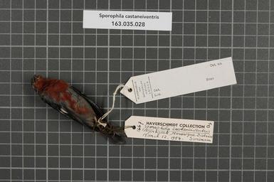 | Keywords: Naturalis Biodiversity Center - RMNH.AVES.22271 2 - Sporophila castaneiventris Cabanis, 1849 - Emberizidae - bird skin specimen.jpeg artwork Dimensions artwork Document type Emberizidae Sporophila Individual count 1 Infraspecific epithet Infraspecific rank Institution Naturalis Kind of unit artwork Kind of unit specimen skin Life stage Surinam Marowijne District Negerkreek Medium artwork Nomenclatural code Occurrence ID page Other fields Other versions artwork Permission license Naturalis donation CC-0 Publication location Scientific name Sporophila castaneiventris Cabanis 1849 Scientific name authorship Cabanis 1849 male Source url http //bioportal naturalis nl Specific epithet castaneiventris State or province Marowijne District Subject keywords artwork Subject keywords publication Title artwork Title publication Type status Uploaded with GWToolset Naturalis_Biodiversity_Center_-_RMNH AVES 22271_2_-_Sporophila_castaneiventris_Cabanis _1849_-_Emberizidae_-_bird_skin_specimen http //medialib naturalis nl/file/id/RMNH AVES 22271_2/format/large Media donated by Naturalis Biodiversity Center Songbird specimens at Naturalis Biodiversity Center Sporophila castaneiventris Sporophila |