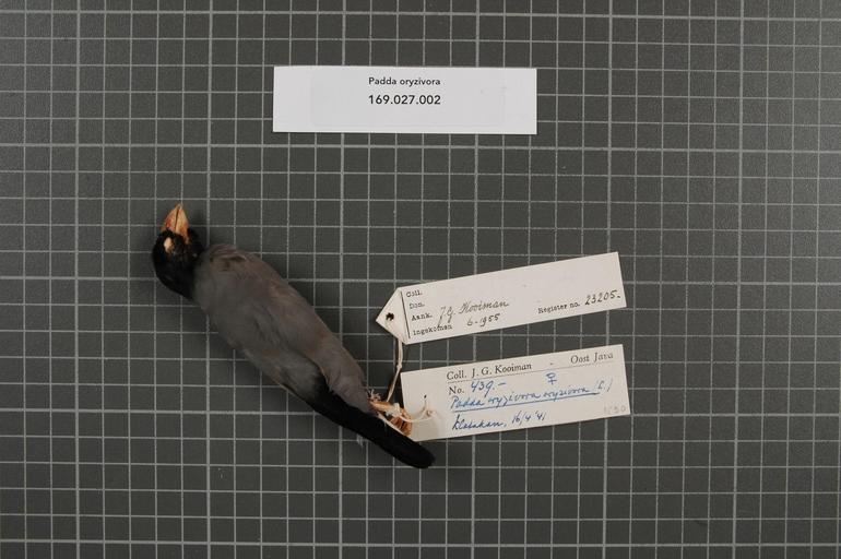 | Keywords: Naturalis Biodiversity Center - RMNH.AVES.23205 1 - Padda oryzivora (Linnaeus, 1758) - Estrildidae - bird skin specimen.jpeg artwork Dimensions artwork Document type Estrildidae Padda Individual count 1 Infraspecific epithet Infraspecific rank Institution Naturalis Kind of unit artwork Kind of unit specimen skin Life stage Indonesia Oost Java Klatakan Medium artwork Nomenclatural code Occurrence ID page Other fields Other versions artwork Permission license Naturalis donation CC-0 Publication location Scientific name Padda oryzivora Linnaeus 1758 Scientific name authorship Linnaeus 1758 female Source url http //bioportal naturalis nl Specific epithet oryzivora State or province Oost Java Subject keywords artwork Subject keywords publication Title artwork Title publication Type status Uploaded with GWToolset Naturalis_Biodiversity_Center_-_RMNH AVES 23205_1_-_Padda_oryzivora_ Linnaeus _1758 _-_Estrildidae_-_bird_skin_specimen http //medialib naturalis nl/file/id/RMNH AVES 23205_1/format/large Media donated by Naturalis Biodiversity Center Songbird specimens at Naturalis Biodiversity Center Lonchura oryzivora Lonchura |