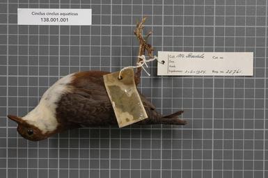 | Keywords: Naturalis Biodiversity Center - RMNH.AVES.25761 2 - Cinclus cinclus aquaticus Bechstein, 1803 - Cinclidae - bird skin specimen.jpeg artwork Dimensions artwork Document type Cinclidae Cinclus Individual count 1 Infraspecific epithet aquaticus Infraspecific rank Institution Naturalis Kind of unit artwork Kind of unit specimen skin Life stage Westfalen Medium artwork Nomenclatural code ADDITIONAL info KammerXXX Occurrence ID page Other fields Other versions artwork Permission license Naturalis donation CC-0 Publication location Scientific name Cinclus cinclus aquaticus Bechstein 1803 Scientific name authorship Bechstein 1803 Source url http //bioportal naturalis nl Specific epithet cinclus State or province Westfalen Subject keywords artwork Subject keywords publication Title artwork Title publication Type status Uploaded with GWToolset Naturalis_Biodiversity_Center_-_RMNH AVES 25761_2_-_Cinclus_cinclus_aquaticus_Bechstein _1803_-_Cinclidae_-_bird_skin_specimen http //medialib naturalis nl/file/id/RMNH AVES 25761_2/format/large Media donated by Naturalis Biodiversity Center Songbird specimens at Naturalis Biodiversity Center Cinclus cinclus Cinclus |