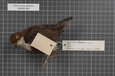 | Keywords: Naturalis Biodiversity Center - RMNH.AVES.25763 2 - Cinclus cinclus aquaticus Bechstein, 1803 - Cinclidae - bird skin specimen.jpeg artwork Dimensions artwork Document type Cinclidae Cinclus Individual count 1 Infraspecific epithet aquaticus Infraspecific rank Institution Naturalis Kind of unit artwork Kind of unit specimen skin Life stage Westfalen Lutterbach Medium artwork Nomenclatural code Occurrence ID page Other fields Other versions artwork Permission license Naturalis donation CC-0 Publication location Scientific name Cinclus cinclus aquaticus Bechstein 1803 Scientific name authorship Bechstein 1803 female Source url http //bioportal naturalis nl Specific epithet cinclus State or province Westfalen Subject keywords artwork Subject keywords publication Title artwork Title publication Type status Uploaded with GWToolset Naturalis_Biodiversity_Center_-_RMNH AVES 25763_2_-_Cinclus_cinclus_aquaticus_Bechstein _1803_-_Cinclidae_-_bird_skin_specimen http //medialib naturalis nl/file/id/RMNH AVES 25763_2/format/large Media donated by Naturalis Biodiversity Center Songbird specimens at Naturalis Biodiversity Center Cinclus cinclus Cinclus |