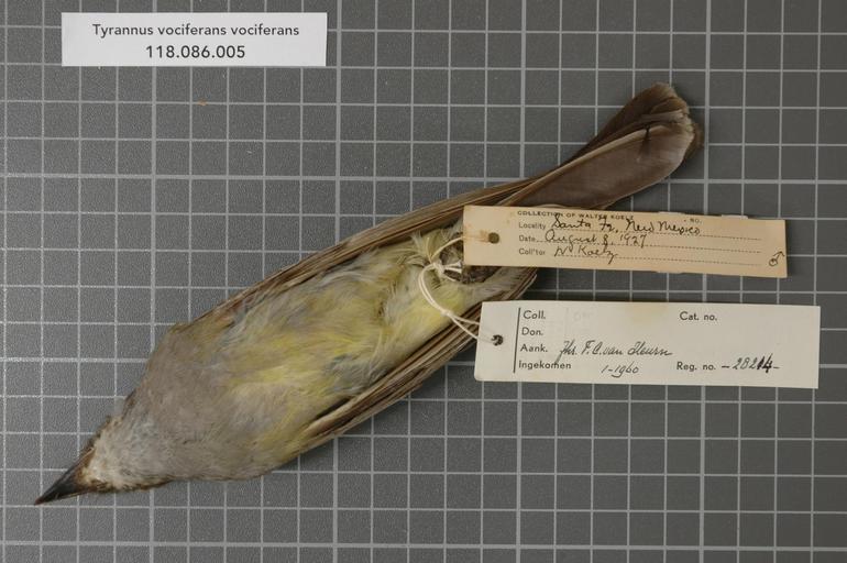 Keywords: Naturalis Biodiversity Center - RMNH.AVES.28214 2 - Tyrannus vociferans vociferans Swainson, 1826 - Tyrannidae - bird skin specimen.jpeg artwork Dimensions artwork Document type Tyrannidae Tyrannus Individual count 1 Infraspecific epithet vociferans Infraspecific rank Institution Naturalis Kind of unit artwork Kind of unit specimen skin Life stage New Mexico Santa Fe Medium artwork Nomenclatural code Occurrence ID page Other fields Other versions artwork Permission license Naturalis donation CC-0 Publication location Scientific name Tyrannus vociferans vociferans Swainson 1826 Scientific name authorship Swainson 1826 male Source url http //bioportal naturalis nl Specific epithet vociferans State or province New Mexico Subject keywords artwork Subject keywords publication Title artwork Title publication Type status Uploaded with GWToolset Naturalis_Biodiversity_Center_-_RMNH AVES 28214_2_-_Tyrannus_vociferans_vociferans_Swainson _1826_-_Tyrannidae_-_bird_skin_specimen http //medialib naturalis nl/file/id/RMNH AVES 28214_2/format/large Media donated by Naturalis Biodiversity Center Songbird specimens at Naturalis Biodiversity Center Tyrannus vociferans Tyrannus |