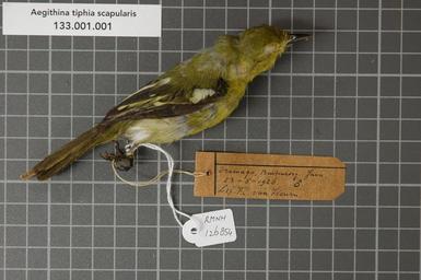 | Keywords: Naturalis Biodiversity Center - RMNH.AVES.126854 1 - Aegithina tiphia scapularis (Horsfield, 1821) - Irenidae - bird skin specimen.jpeg artwork Dimensions artwork Document type Irenidae Aegithina Individual count 1 Infraspecific epithet scapularis Infraspecific rank Kind of unit artwork Kind of unit specimen skin Life stage Indonesia Java Buitenzorg Dramaga Medium artwork Nomenclatural code Occurrence ID Other fields Other versions artwork Permission license Naturalis donation CC-0 Publication location Scientific name Aegithina tiphia scapularis Horsfield 1821 Scientific name authorship Horsfield 1821 male Source url Specific epithet tiphia State or province Subject keywords artwork Subject keywords publication Title artwork Title publication Type status Uploaded with GWToolset Naturalis_Biodiversity_Center_-_RMNH AVES 126854_1_-_Aegithina_tiphia_scapularis_ Horsfield _1821 _-_Irenidae_-_bird_skin_specimen http //medialib naturalis nl/file/id/RMNH AVES 126854_1/format/large Media donated by Naturalis Biodiversity Center Songbird specimens at Naturalis Biodiversity Center Aegithina tiphia Aegithina |