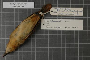 | Keywords: Naturalis Biodiversity Center - RMNH.AVES.33647 2 - Pachyramphus minor (Lesson, 1830) - Tyrannidae - bird skin specimen.jpeg artwork Dimensions artwork Document type Tyrannidae Pachyramphus Individual count 1 Infraspecific epithet Infraspecific rank Institution Naturalis Kind of unit artwork Kind of unit specimen skin Life stage Suriname Commewijne distr Moripokreek Medium artwork Nomenclatural code ADDITIONAL FAMILY INFO mated and nest building with 5093 Occurrence ID page Other fields Other versions artwork Permission license Naturalis donation CC-0 Publication location Scientific name Pachyramphus minor Lesson 1830 Scientific name authorship Lesson 1830 female Source url http //bioportal naturalis nl Specific epithet minor State or province Commewijne distr Subject keywords artwork Subject keywords publication Title artwork Title publication Type status Uploaded with GWToolset Naturalis_Biodiversity_Center_-_RMNH AVES 33647_2_-_Pachyramphus_minor_ Lesson _1830 _-_Tyrannidae_-_bird_skin_specimen http //medialib naturalis nl/file/id/RMNH AVES 33647_2/format/large Media donated by Naturalis Biodiversity Center Songbird specimens at Naturalis Biodiversity Center Pachyramphus minor Pachyramphus |