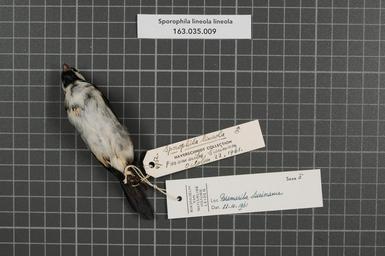 | Keywords: Naturalis Biodiversity Center - RMNH.AVES.33666 2 - Sporophila lineola lineola (Linnaeus, 1758) - Emberizidae - bird skin specimen.jpeg artwork Dimensions artwork Document type Emberizidae Sporophila Individual count 1 Infraspecific epithet lineola Infraspecific rank Institution Naturalis Kind of unit artwork Kind of unit specimen skin Life stage Surinam Paramaribo Medium artwork Nomenclatural code Occurrence ID page Other fields Other versions artwork Permission license Naturalis donation CC-0 Publication location Scientific name Sporophila lineola lineola Linnaeus 1758 Scientific name authorship Linnaeus 1758 male Source url http //bioportal naturalis nl Specific epithet lineola State or province Subject keywords artwork Subject keywords publication Title artwork Title publication Type status Uploaded with GWToolset Naturalis_Biodiversity_Center_-_RMNH AVES 33666_2_-_Sporophila_lineola_lineola_ Linnaeus _1758 _-_Emberizidae_-_bird_skin_specimen http //medialib naturalis nl/file/id/RMNH AVES 33666_2/format/large Media donated by Naturalis Biodiversity Center Songbird specimens at Naturalis Biodiversity Center Sporophila lineola Sporophila |