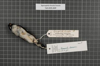 | Keywords: Naturalis Biodiversity Center - RMNH.AVES.33667 2 - Sporophila lineola lineola (Linnaeus, 1758) - Emberizidae - bird skin specimen.jpeg artwork Dimensions artwork Document type Emberizidae Sporophila Individual count 1 Infraspecific epithet lineola Infraspecific rank Institution Naturalis Kind of unit artwork Kind of unit specimen skin Life stage Surinam Paramaribo Medium artwork Nomenclatural code Occurrence ID page Other fields Other versions artwork Permission license Naturalis donation CC-0 Publication location Scientific name Sporophila lineola lineola Linnaeus 1758 Scientific name authorship Linnaeus 1758 male Source url http //bioportal naturalis nl Specific epithet lineola State or province Subject keywords artwork Subject keywords publication Title artwork Title publication Type status Uploaded with GWToolset Naturalis_Biodiversity_Center_-_RMNH AVES 33667_2_-_Sporophila_lineola_lineola_ Linnaeus _1758 _-_Emberizidae_-_bird_skin_specimen http //medialib naturalis nl/file/id/RMNH AVES 33667_2/format/large Media donated by Naturalis Biodiversity Center Songbird specimens at Naturalis Biodiversity Center Sporophila lineola Sporophila |