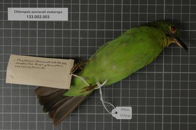 | Keywords: Naturalis Biodiversity Center - RMNH.AVES.126950 2 - Chloropsis sonnerati zosterops Vigors & Horsfield, 1830 - Irenidae - bird skin specimen.jpeg artwork Dimensions artwork Document type Irenidae Chloropsis Individual count 1 Infraspecific epithet zosterops Infraspecific rank Kind of unit artwork Kind of unit specimen skin Life stage Indonesia W Sumatra Medium artwork Nomenclatural code Additional label info Phyllornis Sonnerat Selb Hl 100 Mulleri Temm Pl col female Sumatra orig lab by Temminck Sex remark on label female lab Occurrence ID Other fields Other versions artwork Permission license Naturalis donation CC-0 Publication location Scientific name Chloropsis sonnerati zosterops Vigors Horsfield 1830 Scientific name authorship Vigors Horsfield 1830 female Source url Specific epithet sonnerati State or province W Sumatra Subject keywords artwork Subject keywords publication Title artwork Title publication Type status Uploaded with GWToolset Naturalis_Biodiversity_Center_-_RMNH AVES 126950_2_-_Chloropsis_sonnerati_zosterops_Vigors_ _Horsfield _1830_-_Irenidae_-_bird_skin_specimen http //medialib naturalis nl/file/id/RMNH AVES 126950_2/format/large Media donated by Naturalis Biodiversity Center Songbird specimens at Naturalis Biodiversity Center Chloropsis sonnerati Chloropsis |