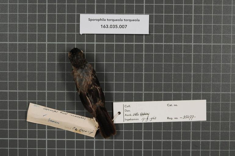 Keywords: Naturalis Biodiversity Center - RMNH.AVES.35077 1 - Sporophila torqueola torqueola (Bonaparte, 1851) - Emberizidae - bird skin specimen.jpeg artwork Dimensions artwork Document type Emberizidae Sporophila Individual count 1 Infraspecific epithet torqueola Infraspecific rank Institution Naturalis Kind of unit artwork Kind of unit specimen skin Life stage Oaxaca Loma Bonita Rancho Las Vegas Medium artwork Nomenclatural code Bodily condition Fett II Occurrence ID page Other fields Other versions artwork Permission license Naturalis donation CC-0 Publication location Scientific name Sporophila torqueola torqueola Bonaparte 1851 Scientific name authorship Bonaparte 1851 male Source url http //bioportal naturalis nl Specific epithet torqueola State or province Oaxaca Subject keywords artwork Subject keywords publication Title artwork Title publication Type status Uploaded with GWToolset Naturalis_Biodiversity_Center_-_RMNH AVES 35077_1_-_Sporophila_torqueola_torqueola_ Bonaparte _1851 _-_Emberizidae_-_bird_skin_specimen http //medialib naturalis nl/file/id/RMNH AVES 35077_1/format/large Media donated by Naturalis Biodiversity Center Songbird specimens at Naturalis Biodiversity Center Sporophila torqueola Sporophila |