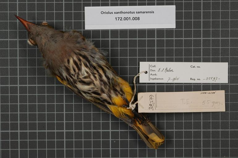 Keywords: Naturalis Biodiversity Center - RMNH.AVES.35597 2 - Oriolus xanthonotus samarensis Steere, 1890 - Oriolidae - bird skin specimen.jpeg artwork Dimensions artwork Document type Oriolidae Oriolus Individual count 1 Infraspecific epithet samarensis Infraspecific rank Institution Naturalis Kind of unit artwork Kind of unit specimen skin Life stage Philippines Mindanao ID Car-can-mad-Lan Aria Surigao del Sur Medium artwork Nomenclatural code ADDITIONAL label info Silliman University Natural History Museum Occurrence ID page Other fields Other versions artwork Permission license Naturalis donation CC-0 Publication location Scientific name Oriolus xanthonotus samarensis Steere 1890 Scientific name authorship Steere 1890 male Source url http //bioportal naturalis nl Specific epithet xanthonotus State or province Mindanao ID Subject keywords artwork Subject keywords publication Title artwork Title publication Type status Uploaded with GWToolset Naturalis_Biodiversity_Center_-_RMNH AVES 35597_2_-_Oriolus_xanthonotus_samarensis_Steere _1890_-_Oriolidae_-_bird_skin_specimen http //medialib naturalis nl/file/id/RMNH AVES 35597_2/format/large Media donated by Naturalis Biodiversity Center Songbird specimens at Naturalis Biodiversity Center Oriolus xanthonotus Oriolus |