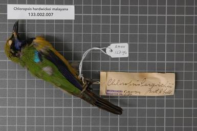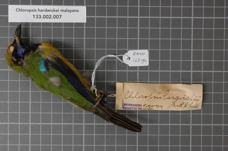 | Keywords: Naturalis Biodiversity Center - RMNH.AVES.127194 1 - Chloropsis hardwickei malayana Robinson & Kloss, 1923 - Irenidae - bird skin specimen.jpeg artwork Dimensions artwork Document type Irenidae Chloropsis Individual count 1 Infraspecific epithet malayana Infraspecific rank Institution Naturalis Kind of unit artwork Kind of unit specimen skin Life stage Batang Padang-Berge Medium artwork Nomenclatural code Occurrence ID page Other fields Other versions artwork Permission license Naturalis donation CC-0 Publication location Scientific name Chloropsis hardwickei malayana Robinson Kloss 1923 Scientific name authorship Robinson Kloss 1923 male Source url http //bioportal naturalis nl Specific epithet hardwickei State or province Batang Padang-Berge Subject keywords artwork Subject keywords publication Title artwork Title publication Type status Uploaded with GWToolset Naturalis_Biodiversity_Center_-_RMNH AVES 127194_1_-_Chloropsis_hardwickei_malayana_Robinson_ _Kloss _1923_-_Irenidae_-_bird_skin_specimen http //medialib naturalis nl/file/id/RMNH AVES 127194_1/format/large Media donated by Naturalis Biodiversity Center Songbird specimens at Naturalis Biodiversity Center Chloropsis hardwickii Chloropsis |