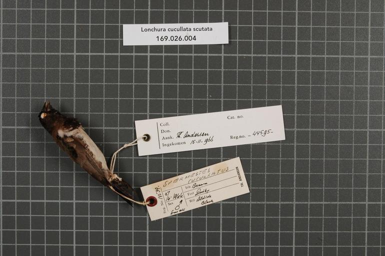 Keywords: Naturalis Biodiversity Center - RMNH.AVES.44595 1 - Lonchura cucullata scutata (Heuglin, 1863) - Estrildidae - bird skin specimen.jpeg artwork Dimensions artwork Document type Estrildidae Lonchura Individual count 1 Infraspecific epithet scutata Infraspecific rank Institution Naturalis Kind of unit artwork Kind of unit specimen skin Life stage Tanzania Mtwara Distr Mikindani Medium artwork Nomenclatural code Occurrence ID page Other fields Other versions artwork Permission license Naturalis donation CC-0 Publication location Scientific name Lonchura cucullata scutata Heuglin 1863 Scientific name authorship Heuglin 1863 male Source url http //bioportal naturalis nl Specific epithet cucullata State or province Mtwara Distr Subject keywords artwork Subject keywords publication Title artwork Title publication Type status Uploaded with GWToolset Naturalis_Biodiversity_Center_-_RMNH AVES 44595_1_-_Lonchura_cucullata_scutata_ Heuglin _1863 _-_Estrildidae_-_bird_skin_specimen http //medialib naturalis nl/file/id/RMNH AVES 44595_1/format/large Media donated by Naturalis Biodiversity Center Songbird specimens at Naturalis Biodiversity Center Lonchura cucullata Lonchura |