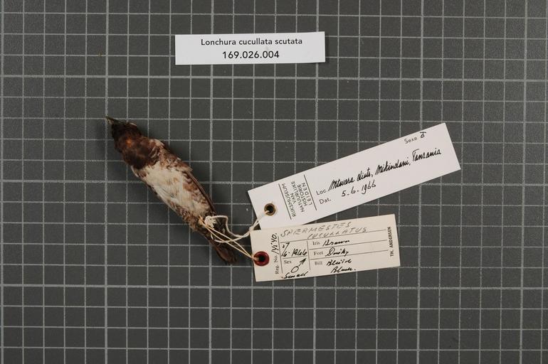 Keywords: Naturalis Biodiversity Center - RMNH.AVES.44596 2 - Lonchura cucullata scutata (Heuglin, 1863) - Estrildidae - bird skin specimen.jpeg artwork Dimensions artwork Document type Estrildidae Lonchura Individual count 1 Infraspecific epithet scutata Infraspecific rank Institution Naturalis Kind of unit artwork Kind of unit specimen skin Life stage Tanzania Mtwara Distr Mikindani Medium artwork Nomenclatural code Occurrence ID page Other fields Other versions artwork Permission license Naturalis donation CC-0 Publication location Scientific name Lonchura cucullata scutata Heuglin 1863 Scientific name authorship Heuglin 1863 male Source url http //bioportal naturalis nl Specific epithet cucullata State or province Mtwara Distr Subject keywords artwork Subject keywords publication Title artwork Title publication Type status Uploaded with GWToolset Naturalis_Biodiversity_Center_-_RMNH AVES 44596_2_-_Lonchura_cucullata_scutata_ Heuglin _1863 _-_Estrildidae_-_bird_skin_specimen http //medialib naturalis nl/file/id/RMNH AVES 44596_2/format/large Media donated by Naturalis Biodiversity Center Songbird specimens at Naturalis Biodiversity Center Lonchura cucullata Lonchura |