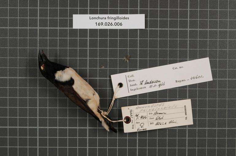 | Keywords: Naturalis Biodiversity Center - RMNH.AVES.44601 1 - Lonchura fringilloides Lafresnaye, 1835 - Estrildidae - bird skin specimen.jpeg artwork Dimensions artwork Document type Estrildidae Lonchura Individual count 1 Infraspecific epithet Infraspecific rank Institution Naturalis Kind of unit artwork Kind of unit specimen skin Life stage Tanzania Mtwara Distr Mikindani Medium artwork Nomenclatural code Occurrence ID page Other fields Other versions artwork Permission license Naturalis donation CC-0 Publication location Scientific name Lonchura fringilloides Lafresnaye 1835 Scientific name authorship Lafresnaye 1835 female Source url http //bioportal naturalis nl Specific epithet fringilloides State or province Mtwara Distr Subject keywords artwork Subject keywords publication Title artwork Title publication Type status Uploaded with GWToolset Naturalis_Biodiversity_Center_-_RMNH AVES 44601_1_-_Lonchura_fringilloides_Lafresnaye _1835_-_Estrildidae_-_bird_skin_specimen http //medialib naturalis nl/file/id/RMNH AVES 44601_1/format/large Media donated by Naturalis Biodiversity Center Songbird specimens at Naturalis Biodiversity Center Lonchura fringilloides Lonchura |