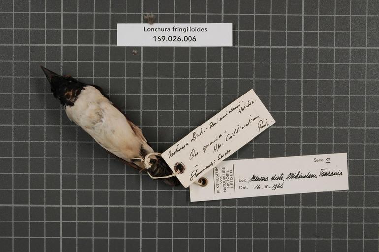 | Keywords: Naturalis Biodiversity Center - RMNH.AVES.44600 2 - Lonchura fringilloides Lafresnaye, 1835 - Estrildidae - bird skin specimen.jpeg artwork Dimensions artwork Document type Estrildidae Lonchura Individual count 1 Infraspecific epithet Infraspecific rank Institution Naturalis Kind of unit artwork Kind of unit specimen skin Life stage Tanzania Mtwara Distr Mikindani Medium artwork Nomenclatural code Occurrence ID page Other fields Other versions artwork Permission license Naturalis donation CC-0 Publication location Scientific name Lonchura fringilloides Lafresnaye 1835 Scientific name authorship Lafresnaye 1835 female Source url http //bioportal naturalis nl Specific epithet fringilloides State or province Mtwara Distr Subject keywords artwork Subject keywords publication Title artwork Title publication Type status Uploaded with GWToolset Naturalis_Biodiversity_Center_-_RMNH AVES 44600_2_-_Lonchura_fringilloides_Lafresnaye _1835_-_Estrildidae_-_bird_skin_specimen http //medialib naturalis nl/file/id/RMNH AVES 44600_2/format/large Media donated by Naturalis Biodiversity Center Songbird specimens at Naturalis Biodiversity Center Lonchura fringilloides Lonchura |