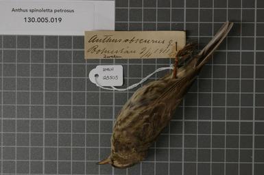 | Keywords: Naturalis Biodiversity Center - RMNH.AVES.128505 1 - Anthus spinoletta petrosus (Montagu, 1798) - Motacillidae - bird skin specimen.jpeg artwork Dimensions artwork Document type Motacillidae Anthus Individual count 1 Infraspecific epithet petrosus Infraspecific rank Institution Naturalis Kind of unit artwork Kind of unit specimen skin Life stage Zweden Bohuslän Medium artwork Nomenclatural code Additional info GK Occurrence ID page Other fields Other versions artwork Permission license Naturalis donation CC-0 Publication location Scientific name Anthus spinoletta petrosus Montagu 1798 Scientific name authorship Montagu 1798 female Source url http //bioportal naturalis nl Specific epithet spinoletta State or province Bohuslän Subject keywords artwork Subject keywords publication Title artwork Title publication Type status Uploaded with GWToolset Naturalis_Biodiversity_Center_-_RMNH AVES 128505_1_-_Anthus_spinoletta_petrosus_ Montagu _1798 _-_Motacillidae_-_bird_skin_specimen http //medialib naturalis nl/file/id/RMNH AVES 128505_1/format/large Media donated by Naturalis Biodiversity Center Songbird specimens at Naturalis Biodiversity Center Anthus petrosus museum specimens |