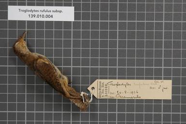 | Keywords: Naturalis Biodiversity Center - RMNH.AVES.128692 1 - Troglodytes rufulus subsp. - Troglodytidae - bird skin specimen.jpeg artwork Dimensions artwork Document type Troglodytidae Troglodytes Individual count 1 Infraspecific epithet subsp Infraspecific rank Institution Naturalis Kind of unit artwork Kind of unit specimen skin Life stage juvenile Medium artwork Nomenclatural code Occurrence ID page Other fields Other versions artwork Permission license Naturalis donation CC-0 Publication location Scientific name Troglodytes rufulus subsp Scientific name authorship male Source url http //bioportal naturalis nl Specific epithet rufulus State or province Subject keywords artwork Subject keywords publication Title artwork Title publication Type status Uploaded with GWToolset Naturalis_Biodiversity_Center_-_RMNH AVES 128692_1_-_Troglodytes_rufulus_subsp _-_Troglodytidae_-_bird_skin_specimen http //medialib naturalis nl/file/id/RMNH AVES 128692_1/format/large Media donated by Naturalis Biodiversity Center Songbird specimens at Naturalis Biodiversity Center Troglodytes rufulus |