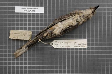 | Keywords: Naturalis Biodiversity Center - RMNH.AVES.128734 2 - Mimus gilvus rostratus Ridgway, 1884 - Mimidae - bird skin specimen.jpeg artwork Dimensions artwork Document type Mimidae Mimus Individual count 1 Infraspecific epithet rostratus Infraspecific rank Institution Naturalis Kind of unit artwork Kind of unit specimen skin Life stage Medium artwork Nomenclatural code Region remark on field label Benedenwindsche - Eil Occurrence ID page Other fields Other versions artwork Permission license Naturalis donation CC-0 Publication location Scientific name Mimus gilvus rostratus Ridgway 1884 Scientific name authorship Ridgway 1884 Source url http //bioportal naturalis nl Specific epithet gilvus State or province Aruba Subject keywords artwork Subject keywords publication Title artwork Title publication Type status Uploaded with GWToolset Naturalis_Biodiversity_Center_-_RMNH AVES 128734_2_-_Mimus_gilvus_rostratus_Ridgway _1884_-_Mimidae_-_bird_skin_specimen http //medialib naturalis nl/file/id/RMNH AVES 128734_2/format/large Media donated by Naturalis Biodiversity Center Songbird specimens at Naturalis Biodiversity Center Mimus gilvus museum specimens |