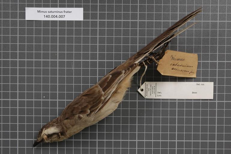 | Keywords: Naturalis Biodiversity Center - RMNH.AVES.128743 1 - Mimus saturninus frater Hellmayr, 1903 - Mimidae - bird skin specimen.jpeg artwork Dimensions artwork Document type Mimidae Mimus Individual count 1 Infraspecific epithet frater Infraspecific rank Institution Naturalis Kind of unit artwork Kind of unit specimen skin Life stage juvenile Medium artwork Nomenclatural code Occurrence ID page Other fields Other versions artwork Permission license Naturalis donation CC-0 Publication location Scientific name Mimus saturninus frater Hellmayr 1903 Scientific name authorship Hellmayr 1903 male Source url http //bioportal naturalis nl Specific epithet saturninus State or province Subject keywords artwork Subject keywords publication Title artwork Title publication Type status Uploaded with GWToolset Naturalis_Biodiversity_Center_-_RMNH AVES 128743_1_-_Mimus_saturninus_frater_Hellmayr _1903_-_Mimidae_-_bird_skin_specimen http //medialib naturalis nl/file/id/RMNH AVES 128743_1/format/large Media donated by Naturalis Biodiversity Center Songbird specimens at Naturalis Biodiversity Center Mimus saturninus museum specimens |