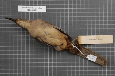 | Keywords: Naturalis Biodiversity Center - RMNH.AVES.128773 2 - Toxostoma redivivum subsp. - Mimidae - bird skin specimen.jpeg artwork Dimensions artwork Document type Mimidae Toxostoma Individual count 1 Infraspecific epithet subsp Infraspecific rank Institution Naturalis Kind of unit artwork Kind of unit specimen skin Life stage Medium artwork Nomenclatural code Occurrence ID page Other fields Other versions artwork Permission license Naturalis donation CC-0 Publication location Scientific name Toxostoma redivivum subsp Scientific name authorship male Source url http //bioportal naturalis nl Specific epithet redivivum State or province California Subject keywords artwork Subject keywords publication Title artwork Title publication Type status Uploaded with GWToolset Naturalis_Biodiversity_Center_-_RMNH AVES 128773_2_-_Toxostoma_redivivum_subsp _-_Mimidae_-_bird_skin_specimen http //medialib naturalis nl/file/id/RMNH AVES 128773_2/format/large Media donated by Naturalis Biodiversity Center Songbird specimens at Naturalis Biodiversity Center Toxostoma redivivum |