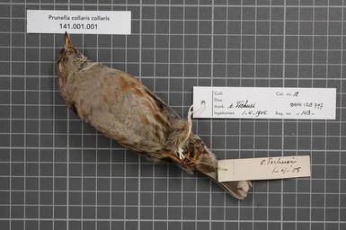 | Keywords: Naturalis Biodiversity Center - RMNH.AVES.128797 2 - Prunella collaris collaris (Scopoli, 1769) - Prunellidae - bird skin specimen.jpeg artwork Dimensions artwork Document type Prunellidae Prunella Individual count 1 Infraspecific epithet collaris Infraspecific rank Institution Naturalis Kind of unit artwork Kind of unit specimen skin Life stage Medium artwork Nomenclatural code Occurrence ID page Other fields Other versions artwork Permission license Naturalis donation CC-0 Publication location Scientific name Prunella collaris collaris Scopoli 1769 Scientific name authorship Scopoli 1769 male Source url http //bioportal naturalis nl Specific epithet collaris State or province Subject keywords artwork Subject keywords publication Title artwork Title publication Type status Uploaded with GWToolset Naturalis_Biodiversity_Center_-_RMNH AVES 128797_2_-_Prunella_collaris_collaris_ Scopoli _1769 _-_Prunellidae_-_bird_skin_specimen http //medialib naturalis nl/file/id/RMNH AVES 128797_2/format/large Media donated by Naturalis Biodiversity Center Songbird specimens at Naturalis Biodiversity Center Prunella collaris Prunella bird |