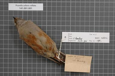 | Keywords: Naturalis Biodiversity Center - RMNH.AVES.128802 2 - Prunella collaris rufilata (Severtzov, 1879) - Prunellidae - bird skin specimen.jpeg artwork Dimensions artwork Document type Prunellidae Prunella Individual count 1 Infraspecific epithet rufilata Infraspecific rank Institution Naturalis Kind of unit artwork Kind of unit specimen skin Life stage Medium artwork Nomenclatural code Additional info Kapakoubekoe Yuyedie Occurrence ID page Other fields Other versions artwork Permission license Naturalis donation CC-0 Publication location Scientific name Prunella collaris rufilata Severtzov 1879 Scientific name authorship Severtzov 1879 male Source url http //bioportal naturalis nl Specific epithet collaris State or province Subject keywords artwork Subject keywords publication Title artwork Title publication Type status Uploaded with GWToolset Naturalis_Biodiversity_Center_-_RMNH AVES 128802_2_-_Prunella_collaris_rufilata_ Severtzov _1879 _-_Prunellidae_-_bird_skin_specimen http //medialib naturalis nl/file/id/RMNH AVES 128802_2/format/large Media donated by Naturalis Biodiversity Center Songbird specimens at Naturalis Biodiversity Center Prunella collaris Prunella bird |