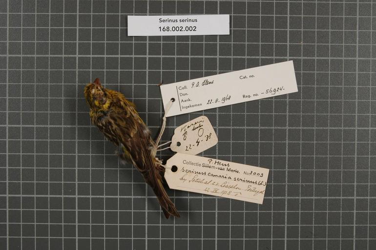 Keywords: Naturalis Biodiversity Center - RMNH.AVES.56924 1 - Serinus serinus (Linnaeus, 1766) - Fringillidae - bird skin specimen.jpeg artwork Dimensions artwork Document type Fringillidae Serinus Individual count 1 Infraspecific epithet Infraspecific rank Institution Naturalis Kind of unit artwork Kind of unit specimen skin Life stage Portugal Z v Lissabon bij Setubal Medium artwork Nomenclatural code Occurrence ID page Other fields Other versions artwork Permission license Naturalis donation CC-0 Publication location Scientific name Serinus serinus Linnaeus 1766 Scientific name authorship Linnaeus 1766 male Source url http //bioportal naturalis nl Specific epithet serinus State or province Subject keywords artwork Subject keywords publication Title artwork Title publication Type status Uploaded with GWToolset Naturalis_Biodiversity_Center_-_RMNH AVES 56924_1_-_Serinus_serinus_ Linnaeus _1766 _-_Fringillidae_-_bird_skin_specimen http //medialib naturalis nl/file/id/RMNH AVES 56924_1/format/large Media donated by Naturalis Biodiversity Center Songbird specimens at Naturalis Biodiversity Center Serinus serinus Serinus |