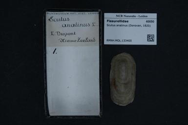| Keywords: Naturalis Biodiversity Center - RMNH.MOL.133400 - Scutus anatinus (Donovan, 1820) - Fissurellidae - Mollusc shell.jpeg artwork Dimensions artwork Document type Fissurellidae subfamily Emarginulinae Scutus Individual count Infraspecific epithet Infraspecific rank Institution Naturalis Kind of unit artwork Kind of unit specimen shell Life stage Medium artwork Nomenclatural code Source institute Leiden Scale the width of the text on the species/QR-code label is 38 mm Occurrence ID page Other fields Other versions artwork Permission license Naturalis donation CC-0 Mollusca Publication location Scientific name Scutus anatinus Donovan 1820 Scientific name authorship Donovan 1820 Source url http //bioportal naturalis nl Specific epithet anatinus State or province Subject keywords artwork Subject keywords publication Title artwork Title publication Type status Uploaded with GWToolset Naturalis_Biodiversity_Center_-_RMNH MOL 133400_-_Scutus_anatinus_ Donovan _1820 _-_Fissurellidae_-_Mollusc_shell http //medialib naturalis nl/file/id/RMNH MOL 133400/format/large Molluscs at Naturalis from the Rijksmuseum van Natuurlijke Historie Media donated by Naturalis Biodiversity Center Scutus Scutus anatinus |