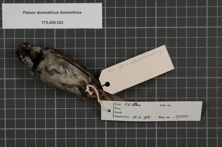 Keywords: Naturalis Biodiversity Center - RMNH.AVES.57204 2 - Passer domesticus domesticus (Linnaeus, 1758) - Ploceidae - bird skin specimen.jpeg artwork Dimensions artwork Document type Ploceidae Passer Individual count 1 Infraspecific epithet domesticus Infraspecific rank Institution Naturalis Kind of unit artwork Kind of unit specimen skin Life stage Portugal bij Setubal Z van Lissabon Medium artwork Nomenclatural code Locality remark On old label Bij Setubal z/v Lissabon Occurrence ID page Other fields Other versions artwork Permission license Naturalis donation CC-0 Publication location Scientific name Passer domesticus domesticus Linnaeus 1758 Scientific name authorship Linnaeus 1758 male Source url http //bioportal naturalis nl Specific epithet domesticus State or province Subject keywords artwork Subject keywords publication Title artwork Title publication Type status Uploaded with GWToolset Naturalis_Biodiversity_Center_-_RMNH AVES 57204_2_-_Passer_domesticus_domesticus_ Linnaeus _1758 _-_Ploceidae_-_bird_skin_specimen http //medialib naturalis nl/file/id/RMNH AVES 57204_2/format/large Media donated by Naturalis Biodiversity Center Songbird specimens at Naturalis Biodiversity Center Passer domesticus Passer |