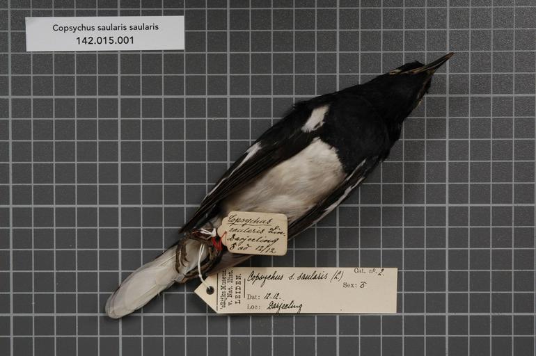 | Keywords: Naturalis Biodiversity Center - RMNH.AVES.129254 1 - Copsychus saularis saularis (Linnaeus, 1758) - Turdidae - bird skin specimen.jpeg artwork Dimensions artwork Document type Turdidae Copsychus Individual count 1 Infraspecific epithet saularis Infraspecific rank Institution Naturalis Kind of unit artwork Kind of unit specimen skin Life stage adult Medium artwork Nomenclatural code Occurrence ID page Other fields Other versions artwork Permission license Naturalis donation CC-0 Publication location Scientific name Copsychus saularis saularis Linnaeus 1758 Scientific name authorship Linnaeus 1758 male Source url http //bioportal naturalis nl Specific epithet saularis State or province Darjeeling Subject keywords artwork Subject keywords publication Title artwork Title publication Type status Uploaded with GWToolset Naturalis_Biodiversity_Center_-_RMNH AVES 129254_1_-_Copsychus_saularis_saularis_ Linnaeus _1758 _-_Turdidae_-_bird_skin_specimen http //medialib naturalis nl/file/id/RMNH AVES 129254_1/format/large Media donated by Naturalis Biodiversity Center Songbird specimens at Naturalis Biodiversity Center Copsychus saularis museum specimens |