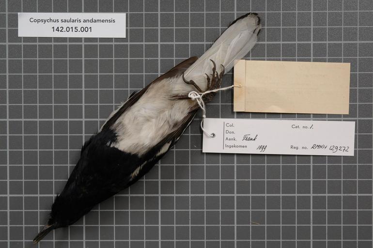| Keywords: Naturalis Biodiversity Center - RMNH.AVES.129272 2 - Copsychus saularis andamensis Hume, 1874 - Turdidae - bird skin specimen.jpeg artwork Dimensions artwork Document type Turdidae Copsychus Individual count 1 Infraspecific epithet andamensis Infraspecific rank Institution Naturalis Kind of unit artwork Kind of unit specimen skin Life stage Medium artwork Nomenclatural code Occurrence ID page Other fields Other versions artwork Permission license Naturalis donation CC-0 Publication location Scientific name Copsychus saularis andamensis Hume 1874 Scientific name authorship Hume 1874 male Source url http //bioportal naturalis nl Specific epithet saularis State or province Subject keywords artwork Subject keywords publication Title artwork Title publication Type status Uploaded with GWToolset Naturalis_Biodiversity_Center_-_RMNH AVES 129272_2_-_Copsychus_saularis_andamensis_Hume _1874_-_Turdidae_-_bird_skin_specimen http //medialib naturalis nl/file/id/RMNH AVES 129272_2/format/large Media donated by Naturalis Biodiversity Center Songbird specimens at Naturalis Biodiversity Center Copsychus saularis museum specimens |