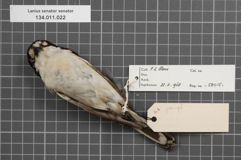 Keywords: Naturalis Biodiversity Center - RMNH.AVES.58015 2 - Lanius senator senator Linnaeus, 1758 - Laniidae - bird skin specimen.jpeg artwork Dimensions artwork Document type Laniidae Lanius Individual count 1 Infraspecific epithet senator Infraspecific rank Institution Naturalis Kind of unit artwork Kind of unit specimen skin Life stage Portugal bij Setubal Z van Lissabon Medium artwork Nomenclatural code Sex remark On Hens label 'male' Occurrence ID page Other fields Other versions artwork Permission license Naturalis donation CC-0 Publication location Scientific name Lanius senator senator Linnaeus 1758 Scientific name authorship Linnaeus 1758 male Source url http //bioportal naturalis nl Specific epithet senator State or province Subject keywords artwork Subject keywords publication Title artwork Title publication Type status Uploaded with GWToolset Naturalis_Biodiversity_Center_-_RMNH AVES 58015_2_-_Lanius_senator_senator_Linnaeus _1758_-_Laniidae_-_bird_skin_specimen http //medialib naturalis nl/file/id/RMNH AVES 58015_2/format/large Media donated by Naturalis Biodiversity Center Songbird specimens at Naturalis Biodiversity Center Lanius senator Lanius |