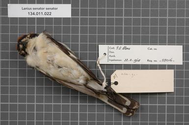 | Keywords: Naturalis Biodiversity Center - RMNH.AVES.58016 2 - Lanius senator senator Linnaeus, 1758 - Laniidae - bird skin specimen.jpeg artwork Dimensions artwork Document type Laniidae Lanius Individual count 1 Infraspecific epithet senator Infraspecific rank Institution Naturalis Kind of unit artwork Kind of unit specimen skin Life stage Portugal bij Setubal Z van Lissabon Medium artwork Nomenclatural code Sex remark On Hens label 'male' Occurrence ID page Other fields Other versions artwork Permission license Naturalis donation CC-0 Publication location Scientific name Lanius senator senator Linnaeus 1758 Scientific name authorship Linnaeus 1758 male Source url http //bioportal naturalis nl Specific epithet senator State or province Subject keywords artwork Subject keywords publication Title artwork Title publication Type status Uploaded with GWToolset Naturalis_Biodiversity_Center_-_RMNH AVES 58016_2_-_Lanius_senator_senator_Linnaeus _1758_-_Laniidae_-_bird_skin_specimen http //medialib naturalis nl/file/id/RMNH AVES 58016_2/format/large Media donated by Naturalis Biodiversity Center Songbird specimens at Naturalis Biodiversity Center Lanius senator Lanius |