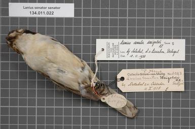 | Keywords: Naturalis Biodiversity Center - RMNH.AVES.58017 1 - Lanius senator senator Linnaeus, 1758 - Laniidae - bird skin specimen.jpeg artwork Dimensions artwork Document type Laniidae Lanius Individual count 1 Infraspecific epithet senator Infraspecific rank Institution Naturalis Kind of unit artwork Kind of unit specimen skin Life stage Portugal bij Setubal Z van Lissabon Medium artwork Nomenclatural code Occurrence ID page Other fields Other versions artwork Permission license Naturalis donation CC-0 Publication location Scientific name Lanius senator senator Linnaeus 1758 Scientific name authorship Linnaeus 1758 female Source url http //bioportal naturalis nl Specific epithet senator State or province Subject keywords artwork Subject keywords publication Title artwork Title publication Type status Uploaded with GWToolset Naturalis_Biodiversity_Center_-_RMNH AVES 58017_1_-_Lanius_senator_senator_Linnaeus _1758_-_Laniidae_-_bird_skin_specimen http //medialib naturalis nl/file/id/RMNH AVES 58017_1/format/large Media donated by Naturalis Biodiversity Center Songbird specimens at Naturalis Biodiversity Center Lanius senator Lanius |