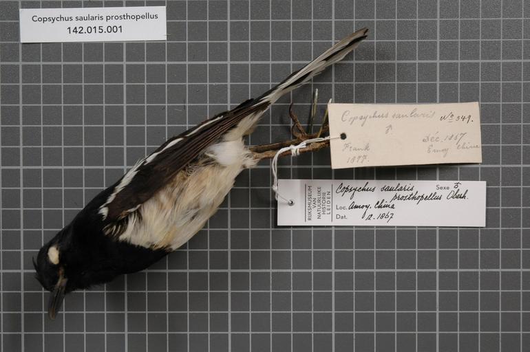 | Keywords: Naturalis Biodiversity Center - RMNH.AVES.129290 1 - Copsychus saularis prosthopellus Oberholser, 1923 - Turdidae - bird skin specimen.jpeg artwork Dimensions artwork Document type Turdidae Copsychus Individual count 1 Infraspecific epithet prosthopellus Infraspecific rank Institution Naturalis Kind of unit artwork Kind of unit specimen skin Life stage Medium artwork Nomenclatural code Occurrence ID page Other fields Other versions artwork Permission license Naturalis donation CC-0 Publication location Scientific name Copsychus saularis prosthopellus Oberholser 1923 Scientific name authorship Oberholser 1923 male Source url http //bioportal naturalis nl Specific epithet saularis State or province Amoy Subject keywords artwork Subject keywords publication Title artwork Title publication Type status Uploaded with GWToolset Naturalis_Biodiversity_Center_-_RMNH AVES 129290_1_-_Copsychus_saularis_prosthopellus_Oberholser _1923_-_Turdidae_-_bird_skin_specimen http //medialib naturalis nl/file/id/RMNH AVES 129290_1/format/large Media donated by Naturalis Biodiversity Center Songbird specimens at Naturalis Biodiversity Center Copsychus saularis museum specimens |
