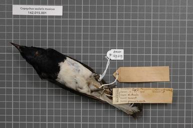 | Keywords: Naturalis Biodiversity Center - RMNH.AVES.129319 2 - Copsychus saularis musicus (Raffles, 1822) - Turdidae - bird skin specimen.jpeg artwork Dimensions artwork Document type Turdidae Copsychus Individual count 1 Infraspecific epithet musicus Infraspecific rank Institution Naturalis Kind of unit artwork Kind of unit specimen skin Life stage Medium artwork Nomenclatural code Occurrence ID page Other fields Other versions artwork Permission license Naturalis donation CC-0 Publication location Scientific name Copsychus saularis musicus Raffles 1822 Scientific name authorship Raffles 1822 male Source url http //bioportal naturalis nl Specific epithet saularis State or province Bengkulen Subject keywords artwork Subject keywords publication Title artwork Title publication Type status Uploaded with GWToolset Naturalis_Biodiversity_Center_-_RMNH AVES 129319_2_-_Copsychus_saularis_musicus_ Raffles _1822 _-_Turdidae_-_bird_skin_specimen http //medialib naturalis nl/file/id/RMNH AVES 129319_2/format/large Media donated by Naturalis Biodiversity Center Songbird specimens at Naturalis Biodiversity Center Copsychus saularis museum specimens |