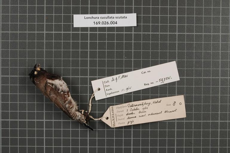 Keywords: Naturalis Biodiversity Center - RMNH.AVES.59754 1 - Lonchura cucullata scutata (Heuglin, 1863) - Estrildidae - bird skin specimen.jpeg artwork Dimensions artwork Document type Estrildidae Lonchura Individual count 1 Infraspecific epithet scutata Infraspecific rank Institution Naturalis Kind of unit artwork Kind of unit specimen skin Life stage Natal Pietermaritzburg Wingrove Medium artwork Nomenclatural code Occurrence ID page Other fields Other versions artwork Permission license Naturalis donation CC-0 Publication location Scientific name Lonchura cucullata scutata Heuglin 1863 Scientific name authorship Heuglin 1863 male Source url http //bioportal naturalis nl Specific epithet cucullata State or province Natal Subject keywords artwork Subject keywords publication Title artwork Title publication Type status Uploaded with GWToolset Naturalis_Biodiversity_Center_-_RMNH AVES 59754_1_-_Lonchura_cucullata_scutata_ Heuglin _1863 _-_Estrildidae_-_bird_skin_specimen http //medialib naturalis nl/file/id/RMNH AVES 59754_1/format/large Media donated by Naturalis Biodiversity Center Songbird specimens at Naturalis Biodiversity Center Lonchura cucullata Lonchura |