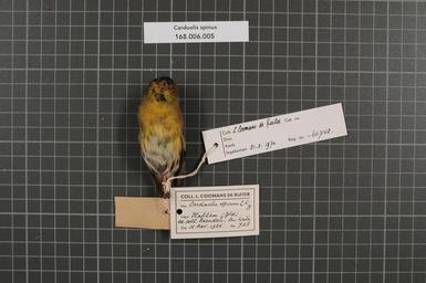 | Keywords: Naturalis Biodiversity Center - RMNH.AVES.60742 1 - Carduelis spinus (Linnaeus, 1758) - Fringillidae - bird skin specimen.jpeg artwork Dimensions artwork Document type Fringillidae Carduelis Individual count 1 Infraspecific epithet Infraspecific rank Institution Naturalis Kind of unit artwork Kind of unit specimen skin Life stage Gld Hattem Medium artwork Nomenclatural code ADDITIONAL preparation info W Engels Zwolle Occurrence ID page Other fields Other versions artwork Permission license Naturalis donation CC-0 Publication location Scientific name Carduelis spinus Linnaeus 1758 Scientific name authorship Linnaeus 1758 male Source url http //bioportal naturalis nl Specific epithet spinus State or province Gld Subject keywords artwork Subject keywords publication Title artwork Title publication Type status Uploaded with GWToolset Naturalis_Biodiversity_Center_-_RMNH AVES 60742_1_-_Carduelis_spinus_ Linnaeus _1758 _-_Fringillidae_-_bird_skin_specimen http //medialib naturalis nl/file/id/RMNH AVES 60742_1/format/large Media donated by Naturalis Biodiversity Center Songbird specimens at Naturalis Biodiversity Center Spinus spinus Carduelis |