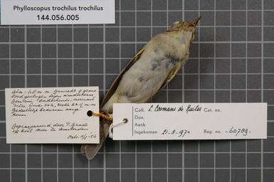 | Keywords: Naturalis Biodiversity Center - RMNH.AVES.60789 2 - Phylloscopus trochilus trochilus (Linnaeus, 1758) - Sylviidae - bird skin specimen.jpeg artwork Dimensions artwork Document type Sylviidae Phylloscopus Individual count 1 Infraspecific epithet trochilus Infraspecific rank Institution Naturalis Kind of unit artwork Kind of unit specimen skin Life stage Zeeland Renesse Medium artwork Nomenclatural code Bodily condition Onderhuids normaal Gedeeltelijk bedorven aangekomen ADDITIONAL preparation info P Graat v/h Zoöl Mus te Amsterdam Occurrence ID page Other fields Other versions artwork Permission license Naturalis donation CC-0 Publication location Scientific name Phylloscopus trochilus trochilus Linnaeus 1758 Scientific name authorship Linnaeus 1758 male Source url http //bioportal naturalis nl Specific epithet trochilus State or province Zeeland Subject keywords artwork Subject keywords publication Title artwork Title publication Type status Uploaded with GWToolset Naturalis_Biodiversity_Center_-_RMNH AVES 60789_2_-_Phylloscopus_trochilus_trochilus_ Linnaeus _1758 _-_Sylviidae_-_bird_skin_specimen http //medialib naturalis nl/file/id/RMNH AVES 60789_2/format/large Media donated by Naturalis Biodiversity Center Songbird specimens at Naturalis Biodiversity Center Phylloscopus trochilus Phylloscopus |