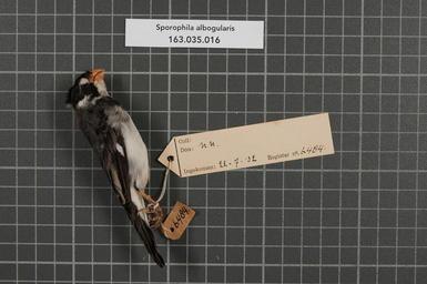 | Keywords: Naturalis Biodiversity Center - RMNH.AVES.6484 1 - Sporophila albogularis (Spix, 1825) - Emberizidae - bird skin specimen.jpeg artwork Dimensions artwork Document type Emberizidae Sporophila Individual count 1 Infraspecific epithet Infraspecific rank Institution Naturalis Kind of unit artwork Kind of unit specimen skin Life stage Brazilie Medium artwork Nomenclatural code Occurrence ID page Other fields Other versions artwork Permission license Naturalis donation CC-0 Publication location Scientific name Sporophila albogularis Spix 1825 Scientific name authorship Spix 1825 male Source url http //bioportal naturalis nl Specific epithet albogularis State or province Subject keywords artwork Subject keywords publication Title artwork Title publication Type status Uploaded with GWToolset Naturalis_Biodiversity_Center_-_RMNH AVES 6484_1_-_Sporophila_albogularis_ Spix _1825 _-_Emberizidae_-_bird_skin_specimen http //medialib naturalis nl/file/id/RMNH AVES 6484_1/format/large Media donated by Naturalis Biodiversity Center Songbird specimens at Naturalis Biodiversity Center Sporophila albogularis Sporophila |