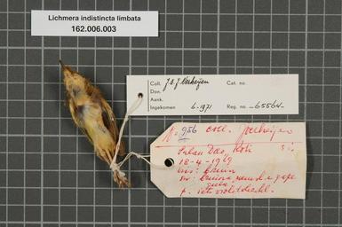 | Keywords: Naturalis Biodiversity Center - RMNH.AVES.65564 2 - Lichmera indistincta limbata (S. Muller, 1843) - Meliphagidae - bird skin specimen.jpeg artwork Dimensions artwork Document type Meliphagidae Lichmera Individual count 1 Infraspecific epithet limbata Infraspecific rank Institution Naturalis Kind of unit artwork Kind of unit specimen skin Life stage juvenile Roti Pulau Dao Medium artwork Nomenclatural code Sex remark On RMNH label -On original label s i Occurrence ID page Other fields Other versions artwork Permission license Naturalis donation CC-0 Publication location Scientific name Lichmera indistincta limbata S Muller 1843 Scientific name authorship S Müller 1843 Source url http //bioportal naturalis nl Specific epithet indistincta State or province Roti Subject keywords artwork Subject keywords publication Title artwork Title publication Type status Uploaded with GWToolset Naturalis_Biodiversity_Center_-_RMNH AVES 65564_2_-_Lichmera_indistincta_limbata_ S _Muller _1843 _-_Meliphagidae_-_bird_skin_specimen http //medialib naturalis nl/file/id/RMNH AVES 65564_2/format/large Media donated by Naturalis Biodiversity Center Songbird specimens at Naturalis Biodiversity Center Lichmera indistincta Lichmera |
