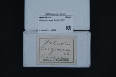 | Keywords: Naturalis Biodiversity Center - RMNH.MOL.133768 1 - Haliotis virginea Gmelin, 1791 - Haliotidae - Mollusc shell.jpeg artwork Dimensions artwork Document type Haliotidae Haliotis Individual count Infraspecific epithet Infraspecific rank Institution Naturalis Kind of unit artwork Kind of unit specimen shell Life stage Medium artwork Nomenclatural code Source institute Leiden Scale the width of the text on the species/QR-code label is 38 mm Occurrence ID page Other fields Other versions artwork Permission license Naturalis donation CC-0 Mollusca Publication location Scientific name Haliotis virginea Gmelin 1791 Scientific name authorship Gmelin 1791 Source url http //bioportal naturalis nl Specific epithet virginea State or province Subject keywords artwork Subject keywords publication Title artwork Title publication Type status Uploaded with GWToolset Naturalis_Biodiversity_Center_-_RMNH MOL 133768_1_-_Haliotis_virginea_Gmelin _1791_-_Haliotidae_-_Mollusc_shell http //medialib naturalis nl/file/id/RMNH MOL 133768_1/format/large Molluscs at Naturalis from the Rijksmuseum van Natuurlijke Historie Media donated by Naturalis Biodiversity Center Haliotis Haliotis virginea |