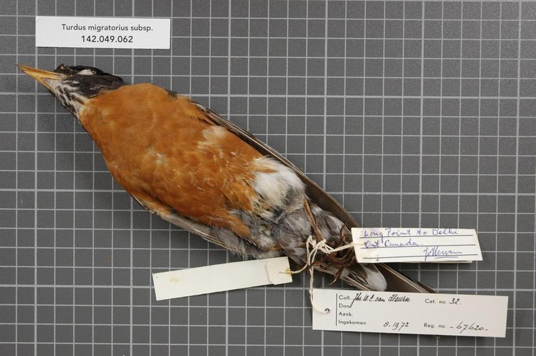 | Keywords: Naturalis Biodiversity Center - RMNH.AVES.67620 2 - Turdus migratorius subsp. - Turdidae - bird skin specimen.jpeg artwork Dimensions artwork Document type Turdidae Turdus Individual count 1 Infraspecific epithet subsp Infraspecific rank Institution Naturalis Kind of unit artwork Kind of unit specimen skin Life stage Canada Ontario weg Long Point - Delhi Medium artwork Nomenclatural code Bodily condition very bad damAged Occurrence ID page Other fields Other versions artwork Permission license Naturalis donation CC-0 Publication location Scientific name Turdus migratorius subsp Scientific name authorship male Source url http //bioportal naturalis nl Specific epithet migratorius State or province Ontario Subject keywords artwork Subject keywords publication Title artwork Title publication Type status Uploaded with GWToolset Naturalis_Biodiversity_Center_-_RMNH AVES 67620_2_-_Turdus_migratorius_subsp _-_Turdidae_-_bird_skin_specimen http //medialib naturalis nl/file/id/RMNH AVES 67620_2/format/large Media donated by Naturalis Biodiversity Center Songbird specimens at Naturalis Biodiversity Center Turdus migratorius museum specimens |