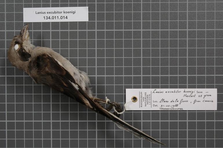 | Keywords: Naturalis Biodiversity Center - RMNH.AVES.86318 1 - Lanius excubitor koenigi Hartert, 1901 - Laniidae - bird skin specimen.jpeg artwork Dimensions artwork Document type Laniidae Lanius Individual count 1 Infraspecific epithet koenigi Infraspecific rank Institution Naturalis Kind of unit artwork Kind of unit specimen skin Life stage Gran Canaria Llano de la Gorro Medium artwork Nomenclatural code Sex remark on label - Occurrence ID page Other fields Other versions artwork Permission license Naturalis donation CC-0 Publication location Scientific name Lanius excubitor koenigi Hartert 1901 Scientific name authorship Hartert 1901 Source url http //bioportal naturalis nl Specific epithet excubitor State or province Gran Canaria Subject keywords artwork Subject keywords publication Title artwork Title publication Type status Uploaded with GWToolset Naturalis_Biodiversity_Center_-_RMNH AVES 86318_1_-_Lanius_excubitor_koenigi_Hartert _1901_-_Laniidae_-_bird_skin_specimen http //medialib naturalis nl/file/id/RMNH AVES 86318_1/format/large Media donated by Naturalis Biodiversity Center Songbird specimens at Naturalis Biodiversity Center Lanius meridionalis museum specimens |